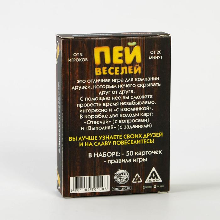 Купить игра для компании "пей веселей" 50 карт от 180 руб. с доставкой до пункта выдачи в Валдае. Интернет магазин ДекаМаркет. Оплата при получении.